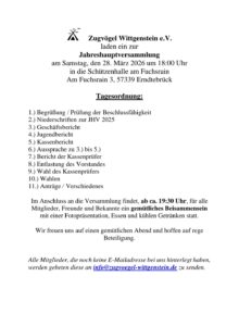 wir laden Euch herzlich zur Jahreshauptversammlung des Zugvögel Wittgenstein e.V. ein: