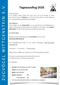 Anmeldungen bis zum 15.02.2026 an walter.hannah@t-online.de. Bitte nutzt hierfür unser Anmeldeformular Tagesausflüge.